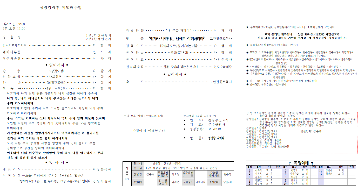 53 2022-7-31 â¼¼±â 6:1~13, ´©°¡º¹À½ 17:26~37 "ÀÎÀÚ°¡ ³ªÅ¸³ª´Â ³¯¿¡µµ ÀÌ·¯Çϸ®¶ó"    °í¿Ïö ¸ñ»ç
