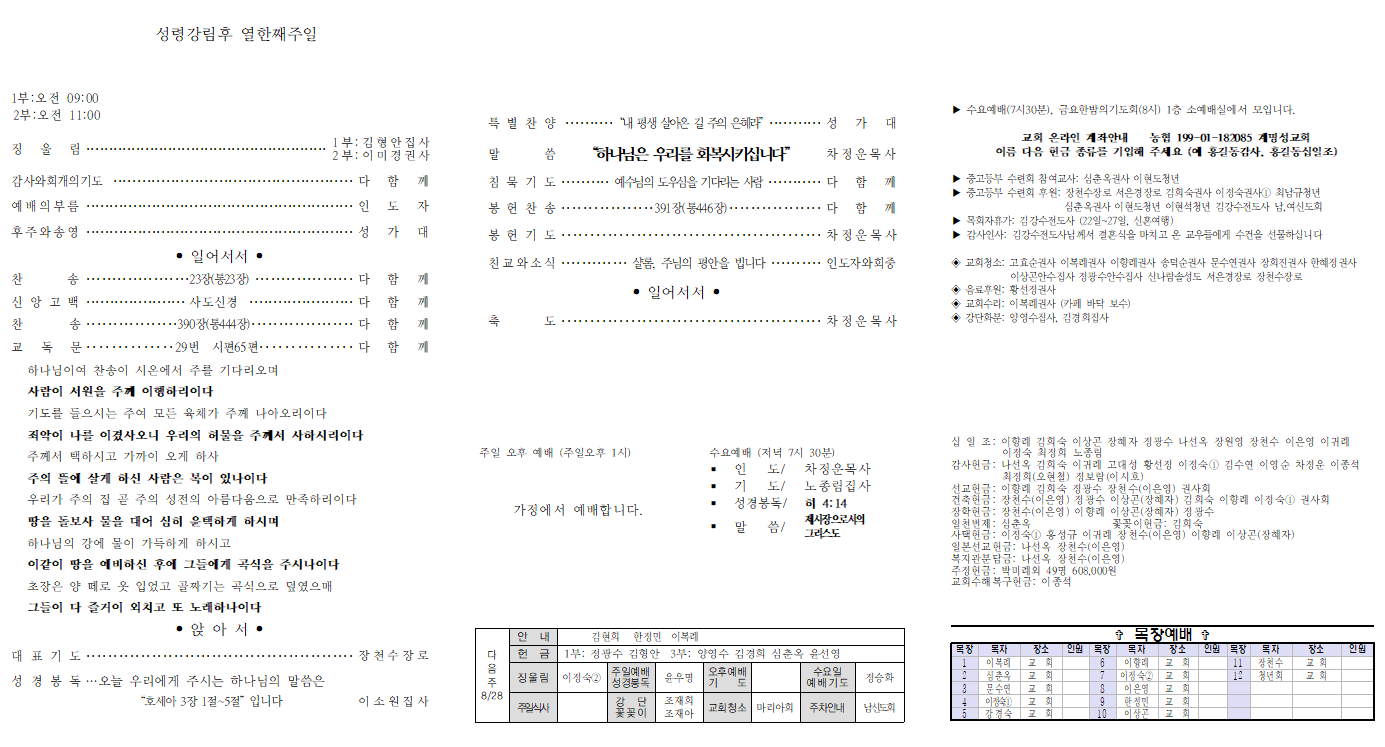 56 2022-8-21 È£¼¼¾Æ 3:1~5 "Çϳª´ÔÀº ¿ì¸®¸¦ ȸº¹½ÃŰ½Ê´Ï´Ù"    Â÷Á¤¿î ¸ñ»ç
